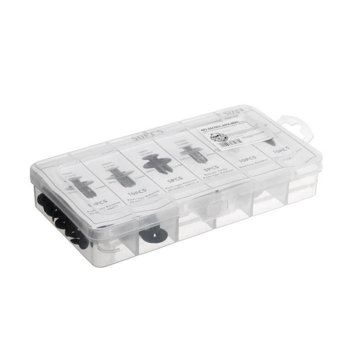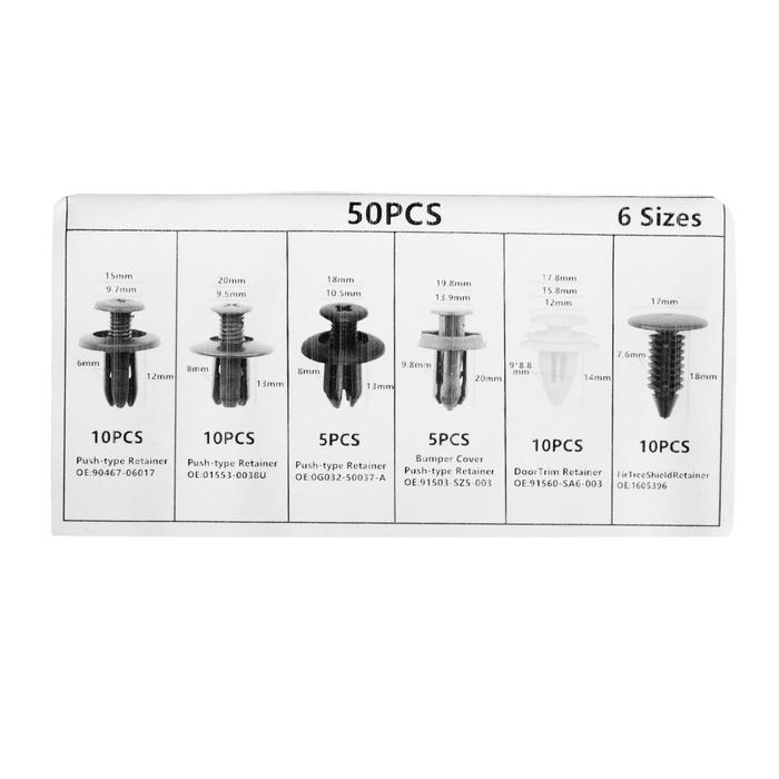 Клипсы и пистоны крепежные, 6 видов, набор 50 шт