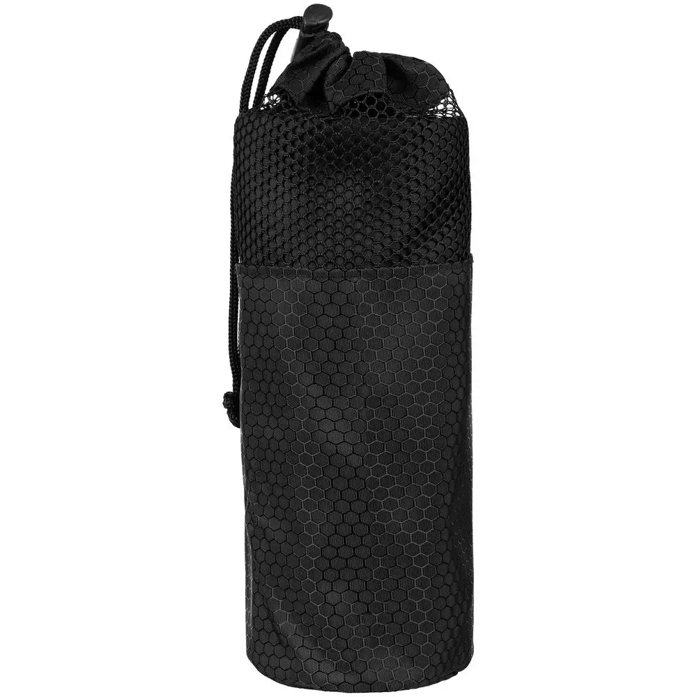 Полотенце упаковано в сумку-чехол из прочной ткани с плетением рипстоп и дышащим сетчатым верхом. Чехол также можно использовать в качестве несессера для косметических и купальных принадлежностей.