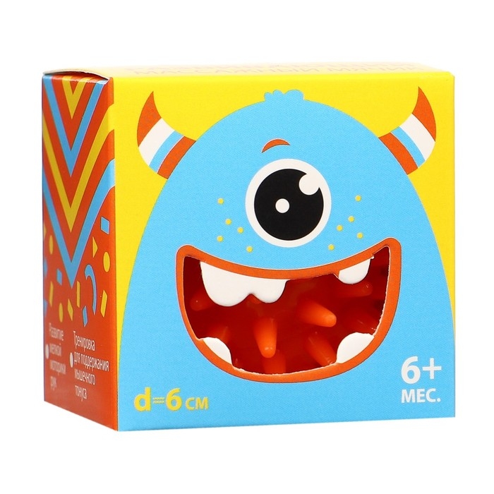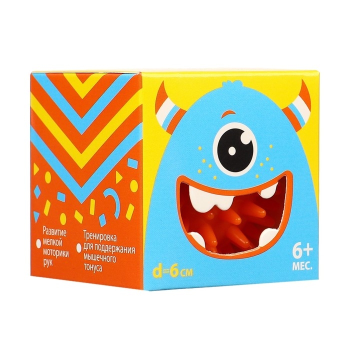 Развивающий массажный мячик «Монстрик», диаметр 6 см, цвет оранжевый, Крошка Я