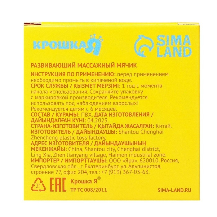 Мячики торговой марки Крошка Я обладают рельефной поверхностью, способствующей развитию мелкой моторики и тактильных ощущений. Фактурная поверхность стимулирует и благотворно воздействует на нервные окончания, ответственные за большинство процессов в организме! Игрушкой можно не только играть в комнате, можно купаться, заниматься и делать массаж крохе. Яркие цвета мячиков помогают развить зрение.
