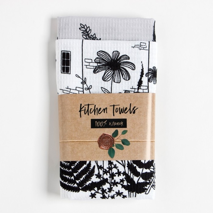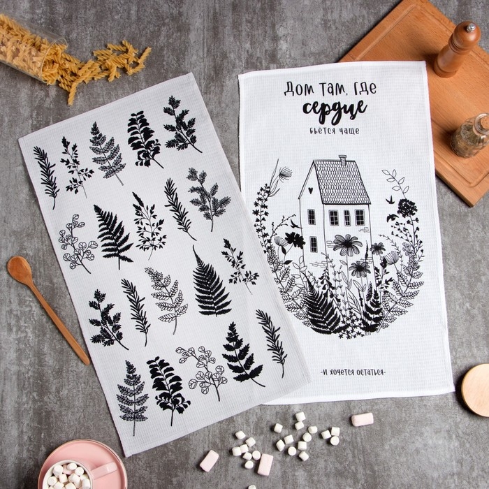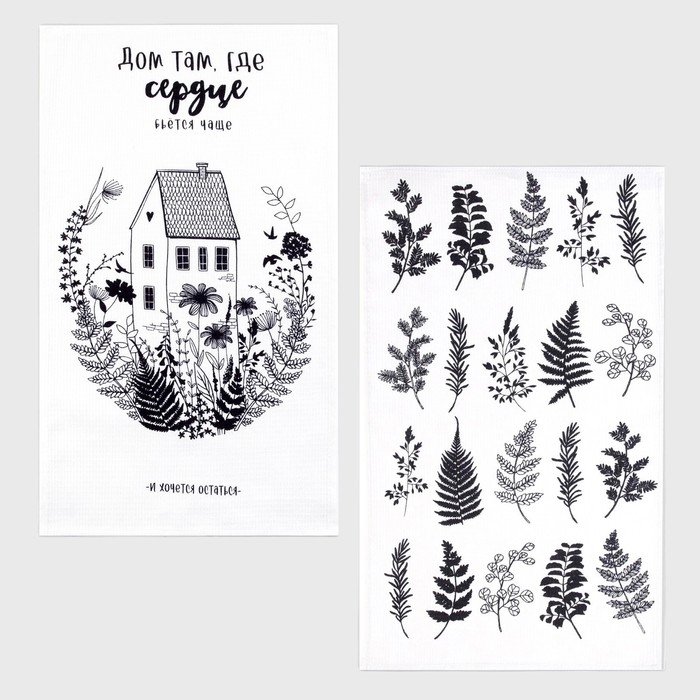 Набор полотенец кухонный "Доляна" Листья 35х60см-2шт, 100% хлопок