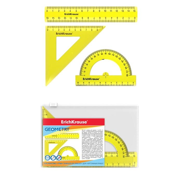 Набор чертежный ErichKrause Neon, малый (линейка, угольник, транспортир), жёлтый, в флоупаке