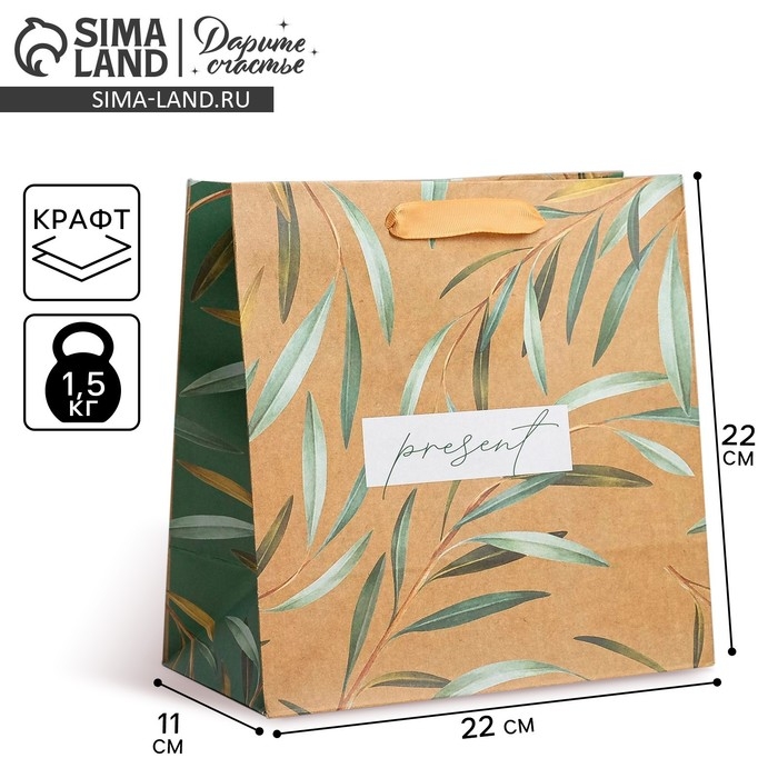 Пакет подарочный крафтовый квадратный, упаковка, Present, 22 х 22 х 11 см
