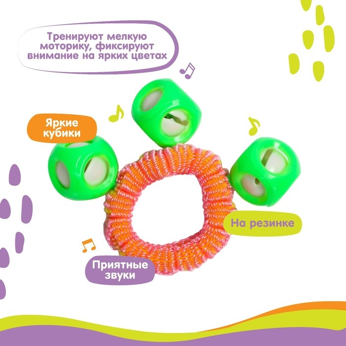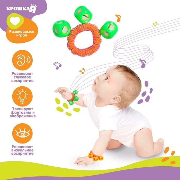 Погремушка - браслет «На ручку», 3 бубенчика, цвет МИКС, Крошка Я