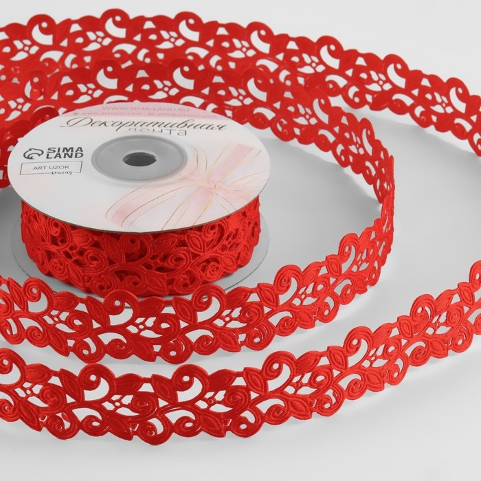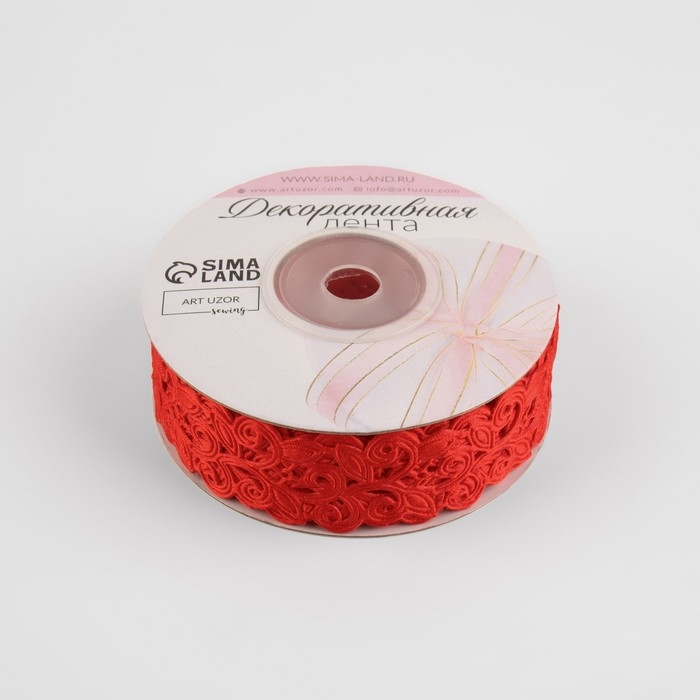Лента фигурная «Вьюнчик», 25 мм, 9 ± 0,5 м, цвет красный