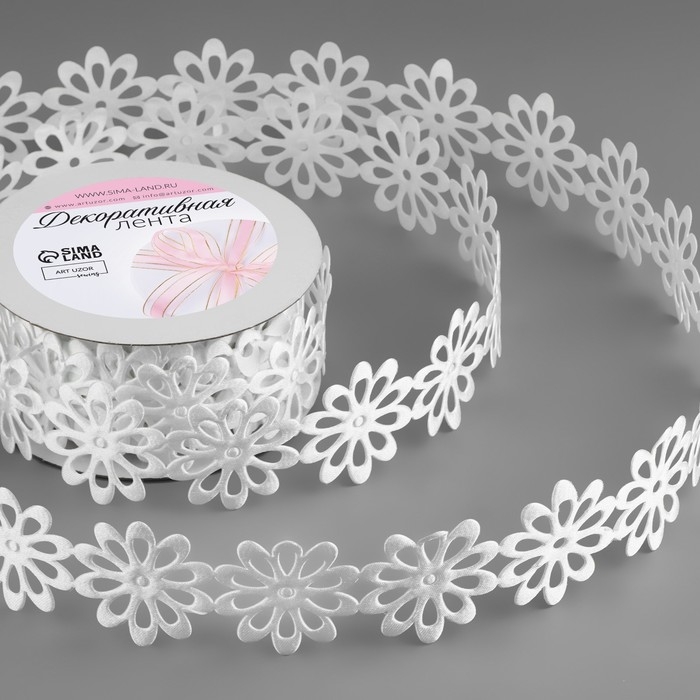 Лента фигурная «Ромашки», 25 мм, 9 ± 0,5 м, цвет белый