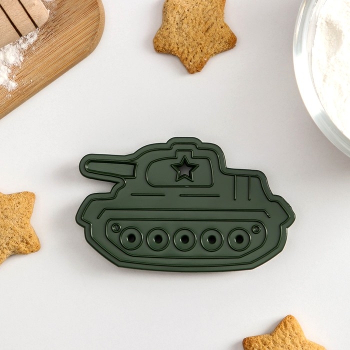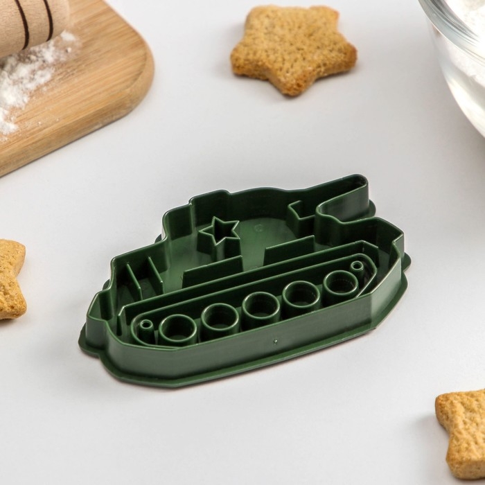 Форма для печенья «Танк», вырубка, штамп, 10,5×6,5×1,5 см, цвет зелёный