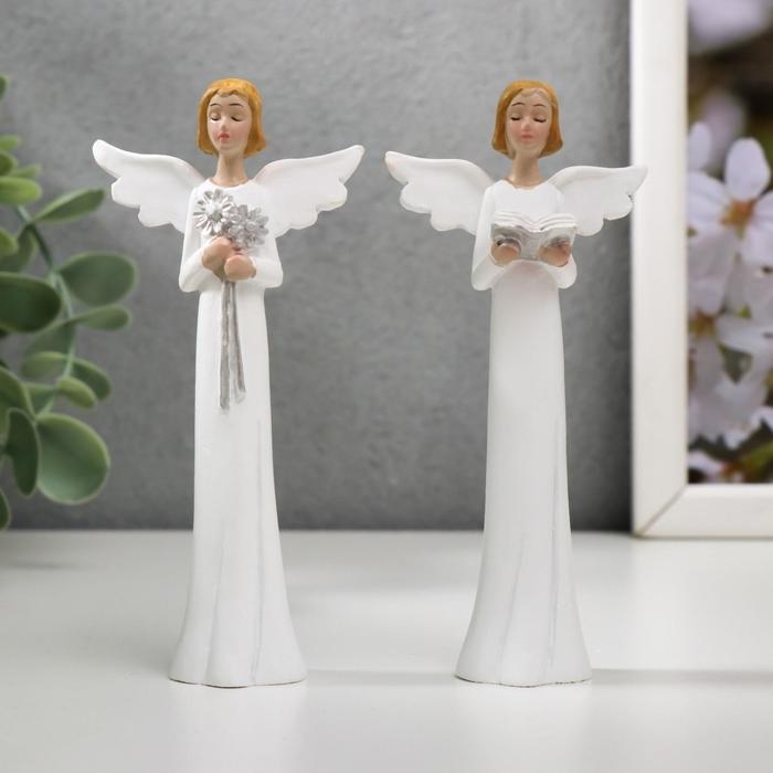Сувенир полистоун "Ангел в белом платье с книгой/голубем/цветами" МИКС 10,5х4,8х2 см