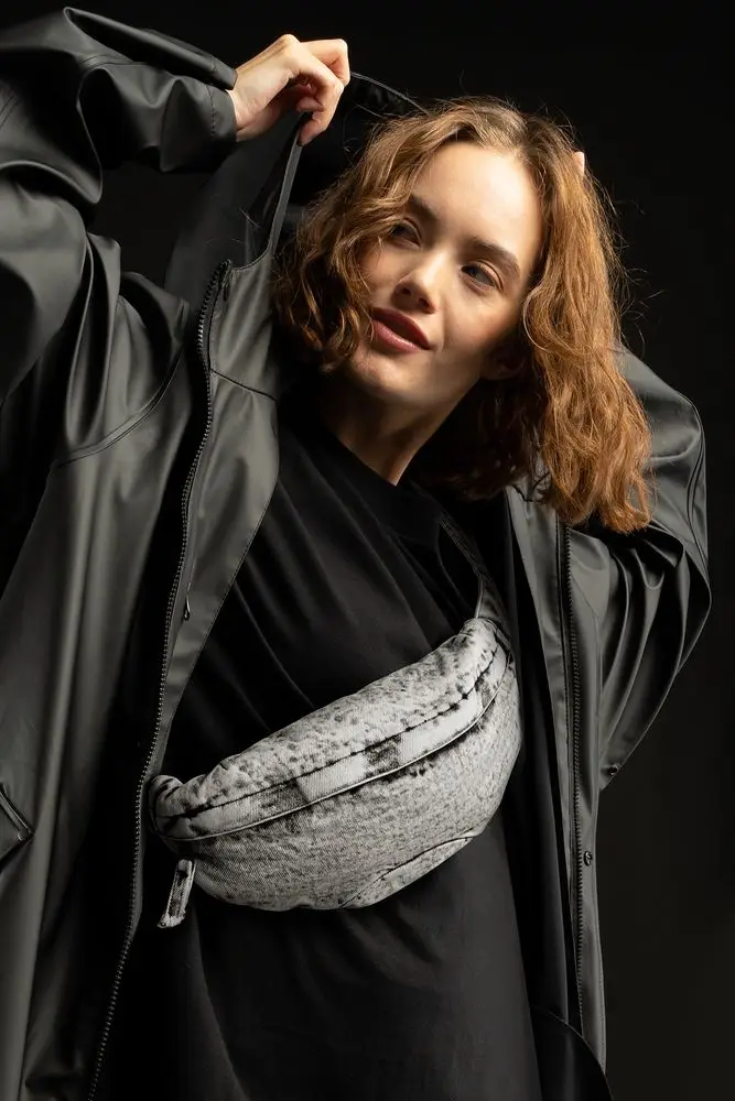 Базовая поясная сумка из джинсовой ткани разработана в рамках единой коллекции и легко собирается в комплекты. Специально спроектированные лекала и технологии пошива открывают простор для любых вариантов кастомизации и нанесения изображений. На видимой части изделий нет лейблов с айдентикой бренда, а название бренда с уходника легко удалить.