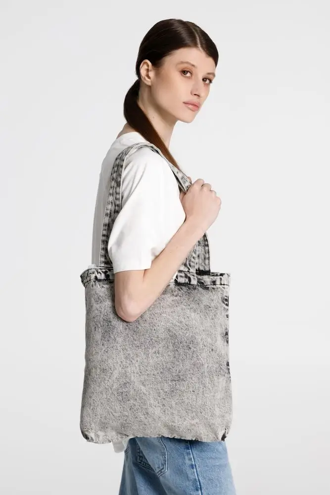 Базовый шопер из джинсовой ткани разработан в рамках единой коллекции и легко собирается в комплекты. Специально спроектированные лекала и технологии пошива открывают простор для любых вариантов кастомизации и нанесения изображений. На видимой части изделий нет лейблов с айдентикой бренда, а название бренда с уходника легко удалить.