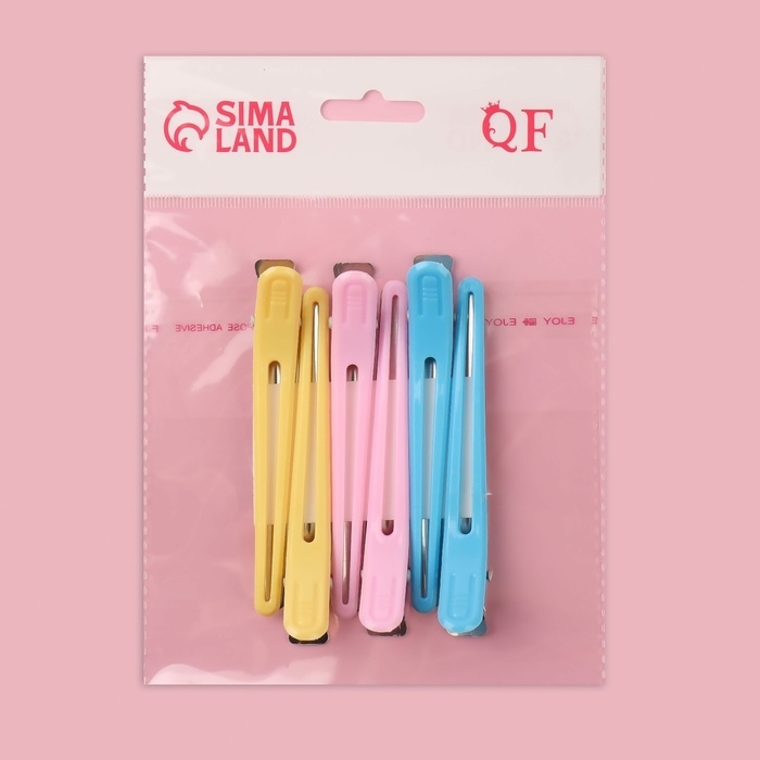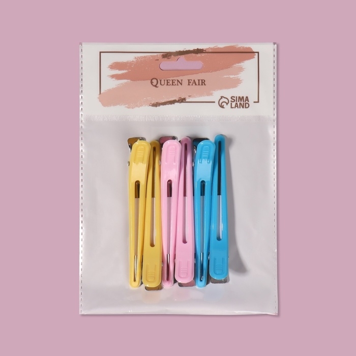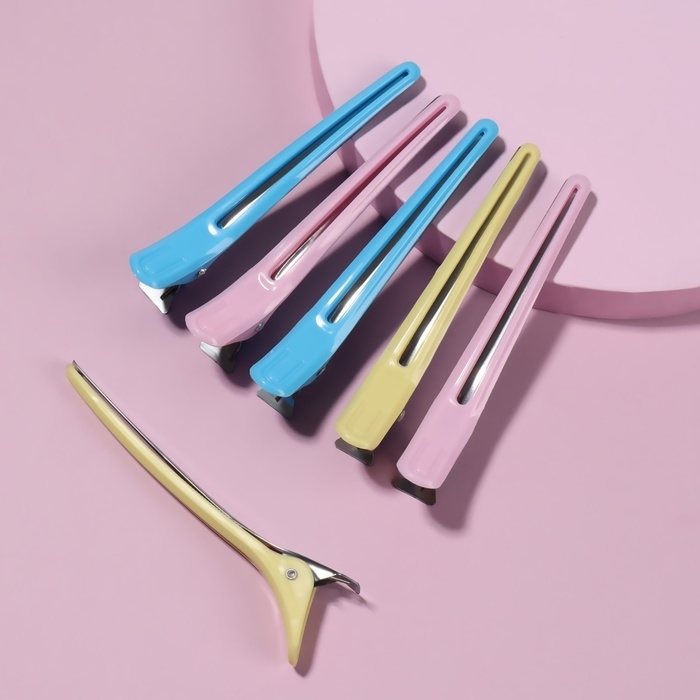 Зажимы для волос, набор - 6 шт, 10 см, цвет МИКС