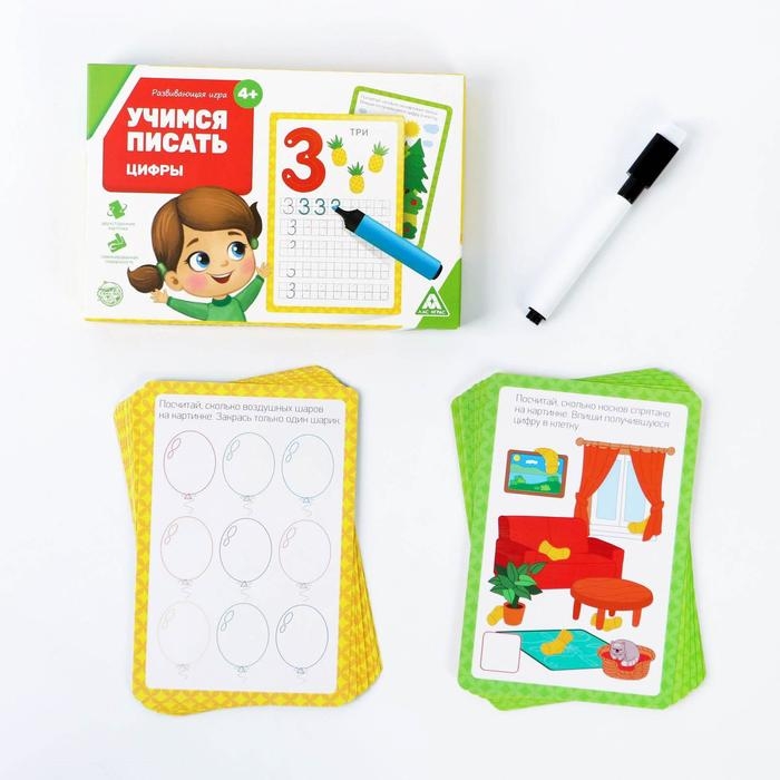 Развивающий набор пиши-стирай «Учимся писать. Цифры», 18 карт