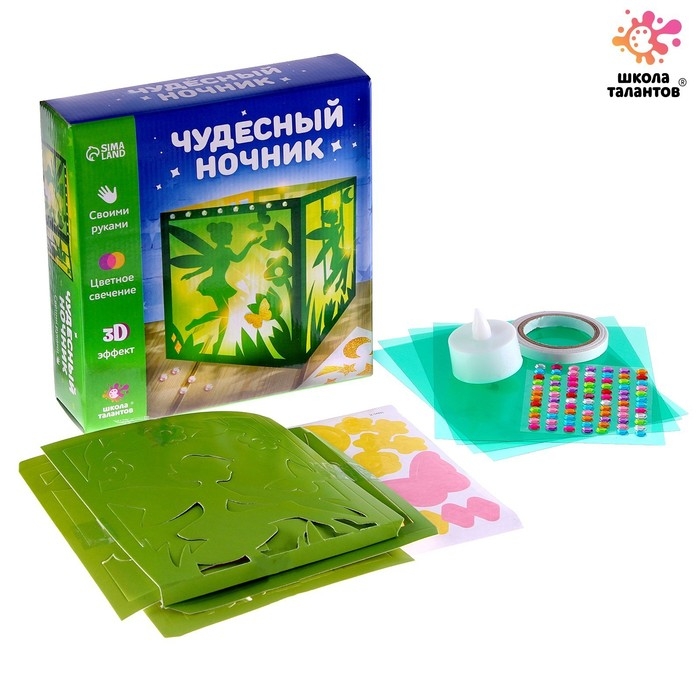 С набором для творчества «Чудесный ночник» у ребёнка получится настоящий ночник. Каждый набор — это целая история: Замок принцессы, Лесная фея, Волшебный лес, Крутые гонки.