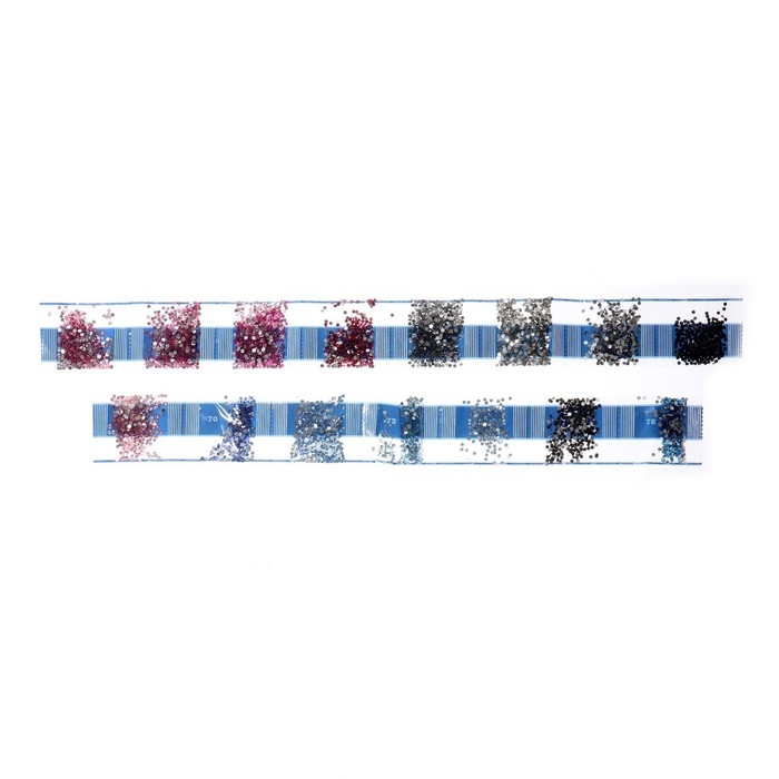 Разложите кристаллики с помощью карандаша по указанной схеме, заполнив полотно. Тканевая основа с точечным клеевым покрытием будет надёжно удерживать стразы. На картине уже обозначены необходимые оттенки.
