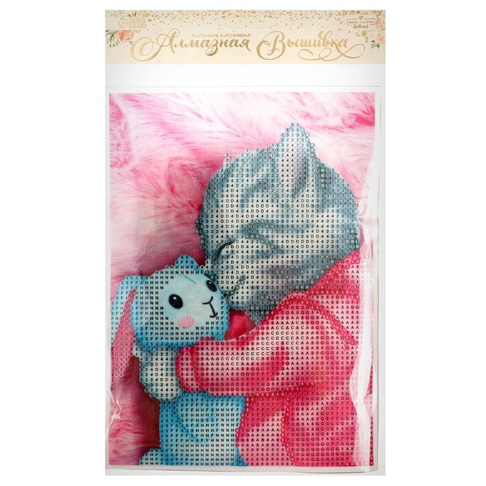 Алмазная мозаика с частичным заполнением на холсте «Котик», 15 х 21 см