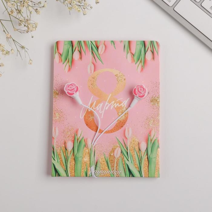 Наушники вакуумные на открытке «8 марта», 11 х 20,8 см