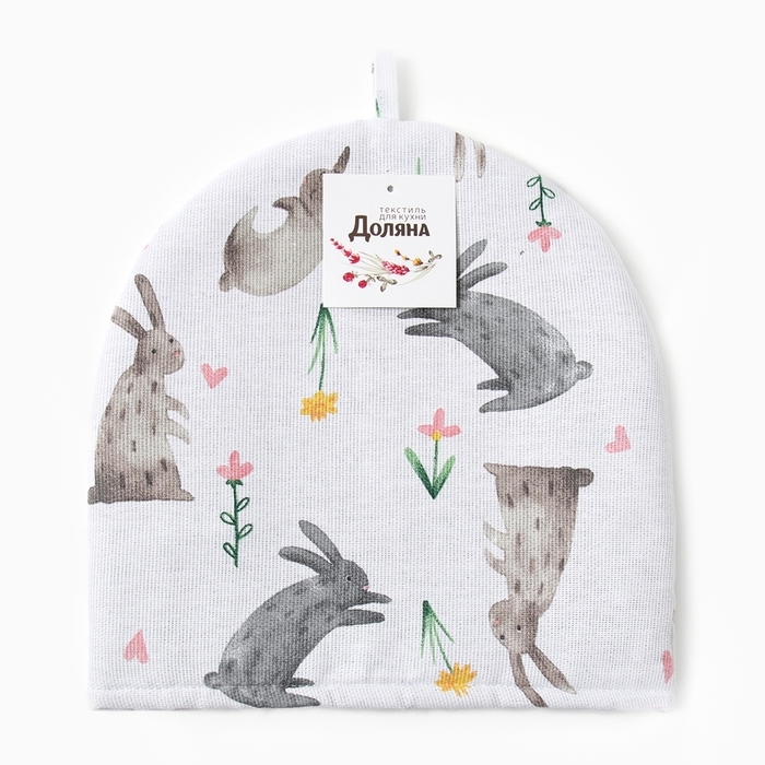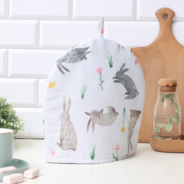 Грелка на чайник Доляна Fluffy bunnies 28х28см, 100% хл, 164г/м2