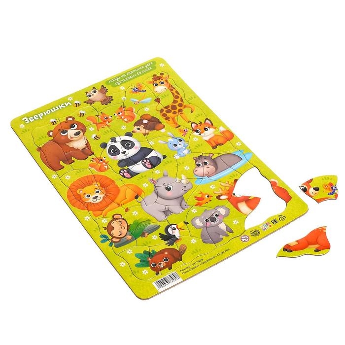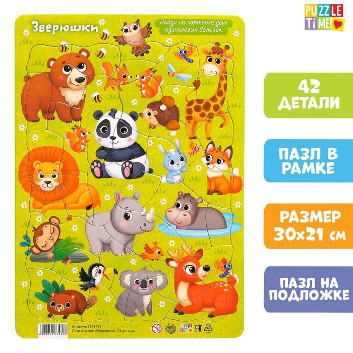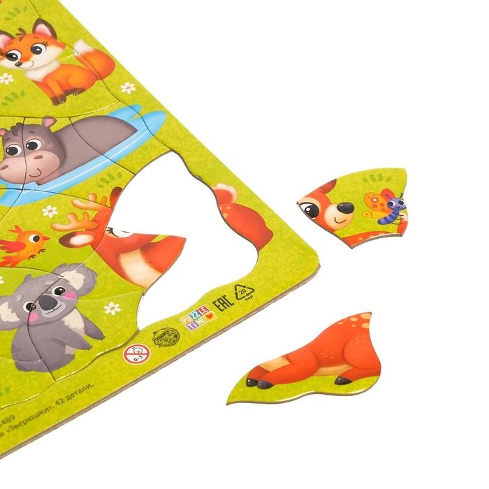 Пазл в рамке «Зверюшки», на подложке, 42 детали