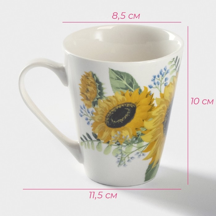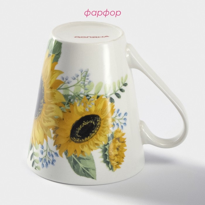Кружка фарфоровая Доляна «Подсолнухи», 320 мл, цвет белый