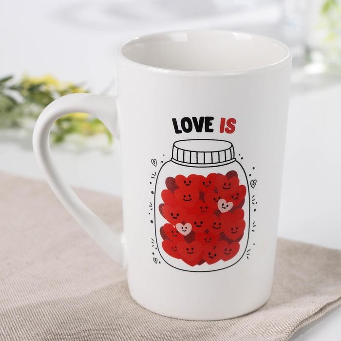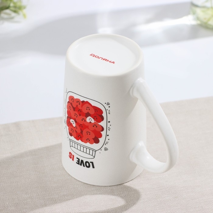 Кружка фарфоровая Доляна «Баночка любви», 380 мл, цвет белый