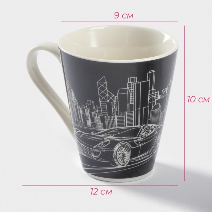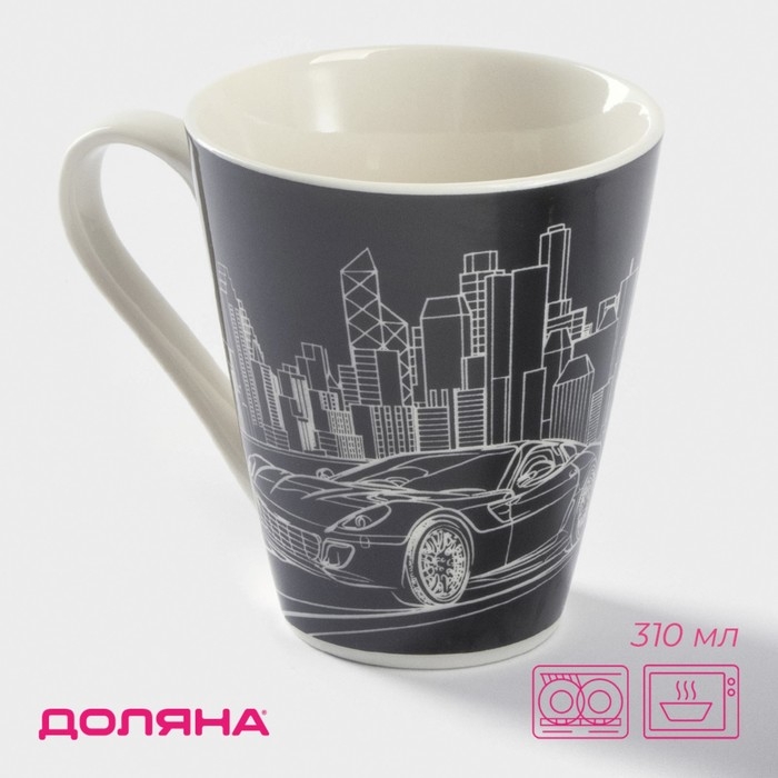 Кружка фарфоровая Доляна «Машина», 310 мл, цвет чёрный