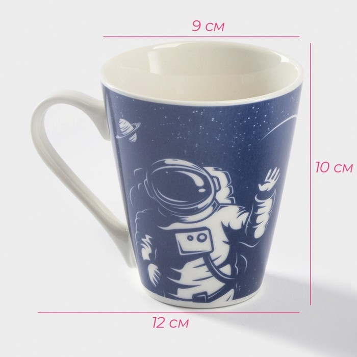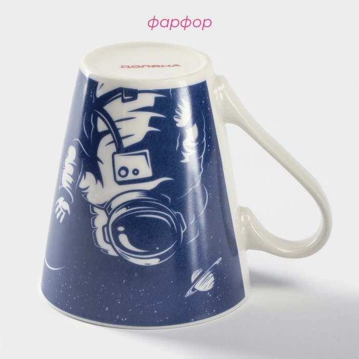Кружка фарфоровая Доляна «Поехали!», 310 мл, цвет синий и белый