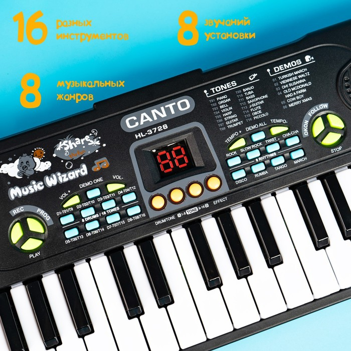 Синтезатор «Весёлые мелодии» с микрофоном, 37 клавиш
