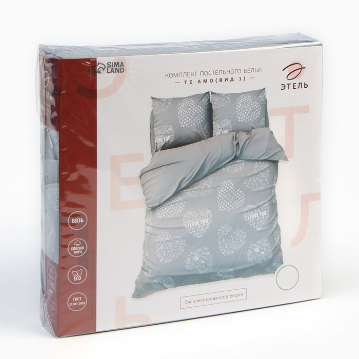 Постельное бельё "Этель" 2 сп Te amo (вид 1) 175 х 215 см, 200 х 220 см, 70 х 70 - 2 шт, бязь