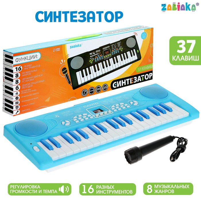 Синтезатор «Нежность» с микрофоном, 37 клавиш, цвет голубой