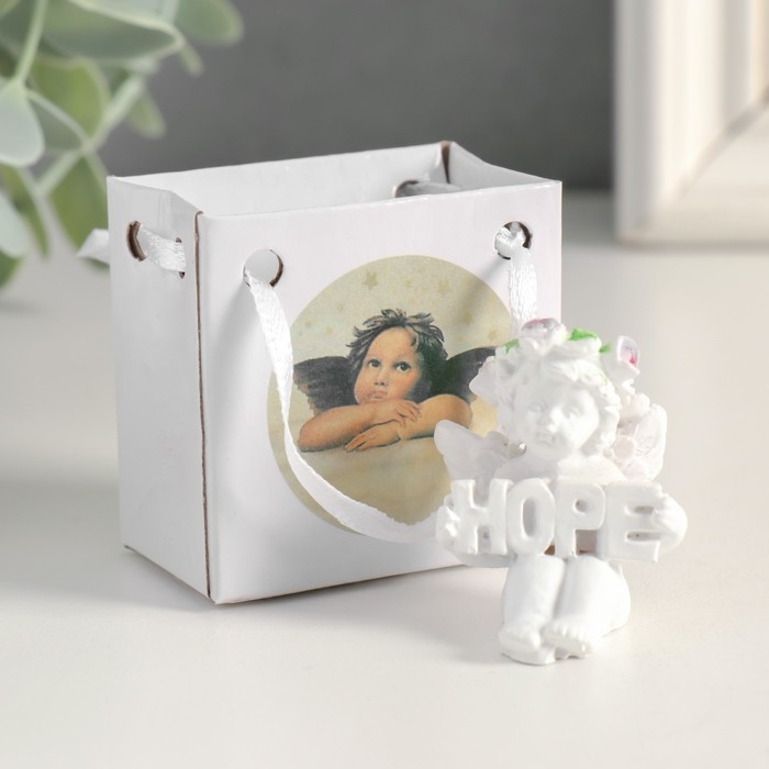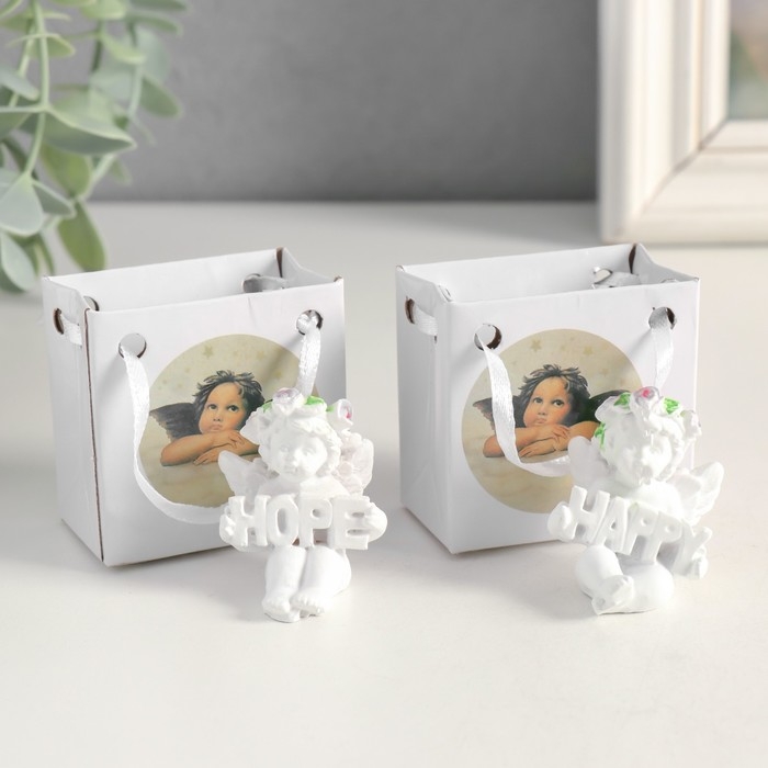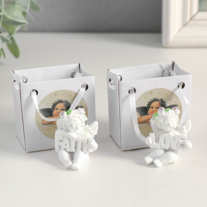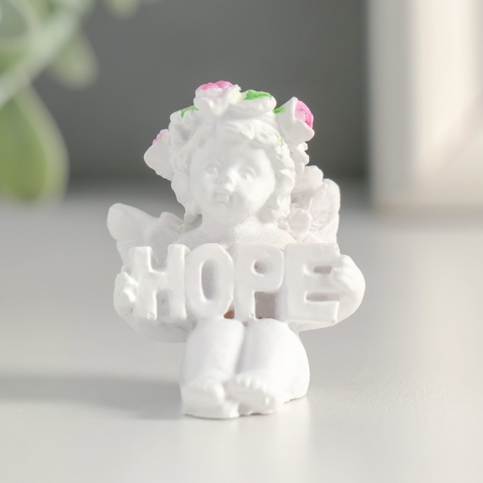 Сувенир полистоун "Белоснежный ангел с надписью в руках" МИКС 4х3х3 см