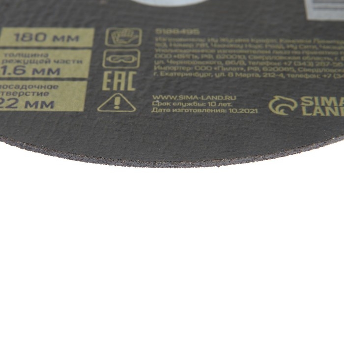 Круг отрезной по металлу ТУНДРА, армированный, 180 х 1.6 х 22 мм