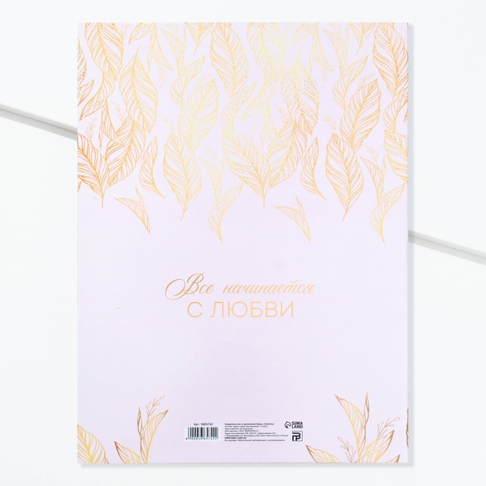 Свидетельство о заключении брака "Всё начинается с любви" тиснение, 23,5 х 31,3 см.