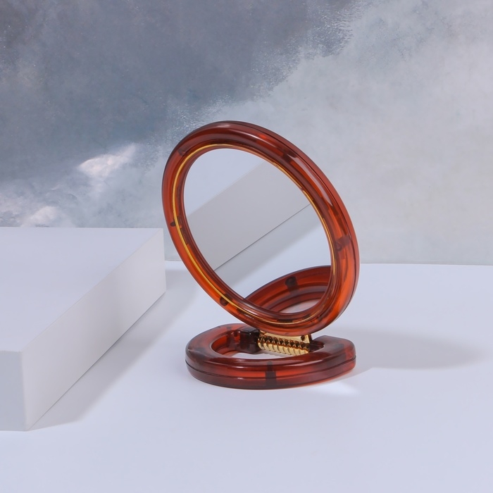 Зеркало настольное - подвесное «Круг», двустороннее, с увеличением, d зеркальной поверхности 9 см, цвет «янтарный»