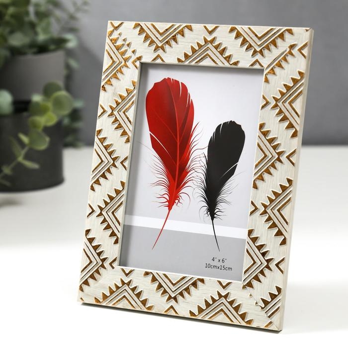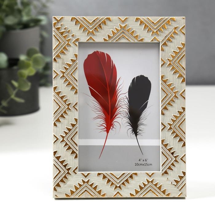 Фоторамка пластик 10х15 см "Золотые индейские узоры на серо-бежевом" 18,5х13,8 см