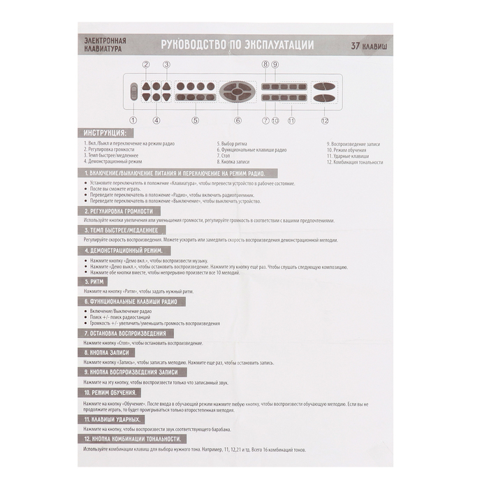 Синтезатор «Супер музыкант-2»: FM-радио, 37 клавиш, микрофоном и блоком питания