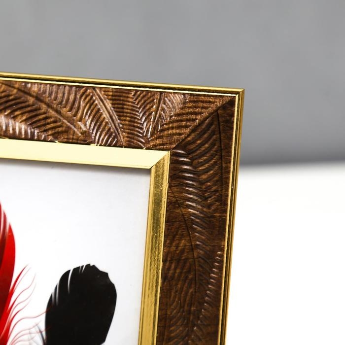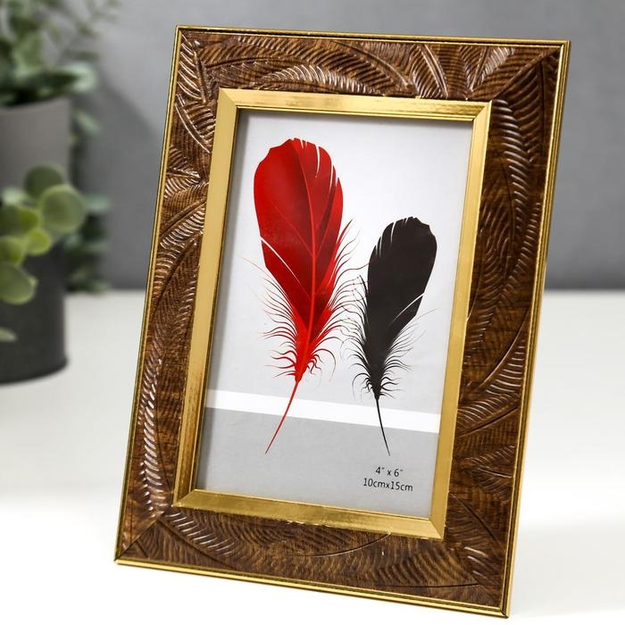 Фоторамка пластик 10х15 см "Листья на шоколаде, золотая двойная рамка" 19,8х14,8 см