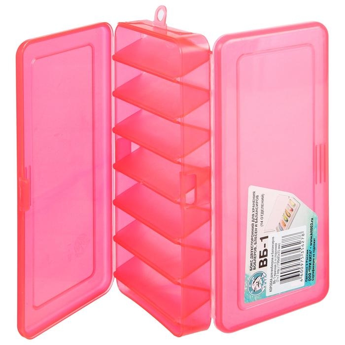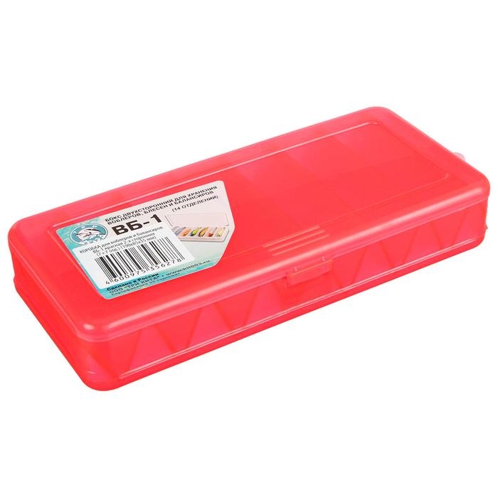 Коробка для воблеров и балансиров ВБ-1, 2-сторонняя, 7+7 отделений, 190 х 85 х 35 мм, красная