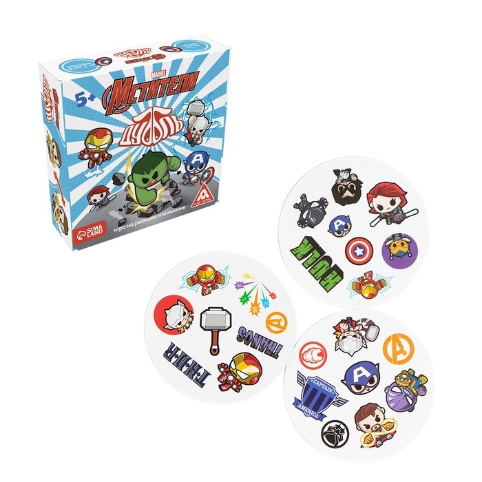 Перед вами увлекательная игра в совершенно новом исполнении — на карточках вас ждут самые известные герои комиксов MARVEL! На каждой паре карт есть общая картинка, и она только одна. Ваша задача — как можно быстрее ее найти! Поэтому скорее собирайте родных или друзей и начинайте веселье!