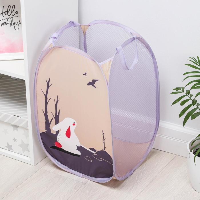 Корзина для игрушек Доляна «Зайка», складная, 32×32×52 см, цвет сиреневый