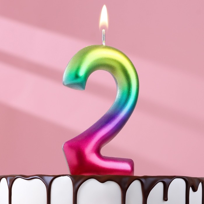 Свеча в торт "Акварель", цифра 2, 9 см, ГИГАНТ