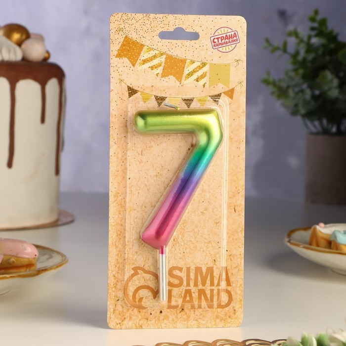 Свеча в торт "Акварель", цифра 7, 9 см, ГИГАНТ