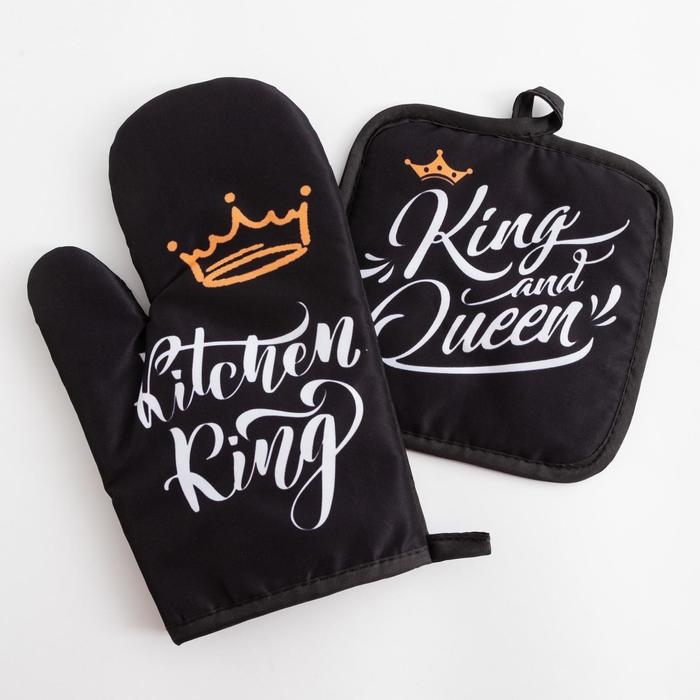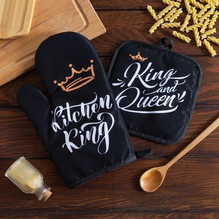 Кухонный набор 2 прихватки Доляна «King», прихватка 17х17 см, рукав. 26х16 см