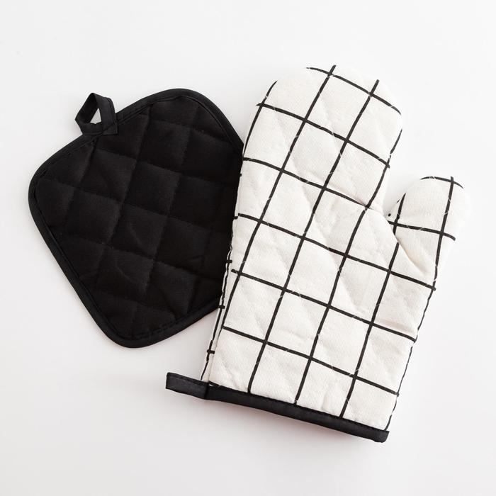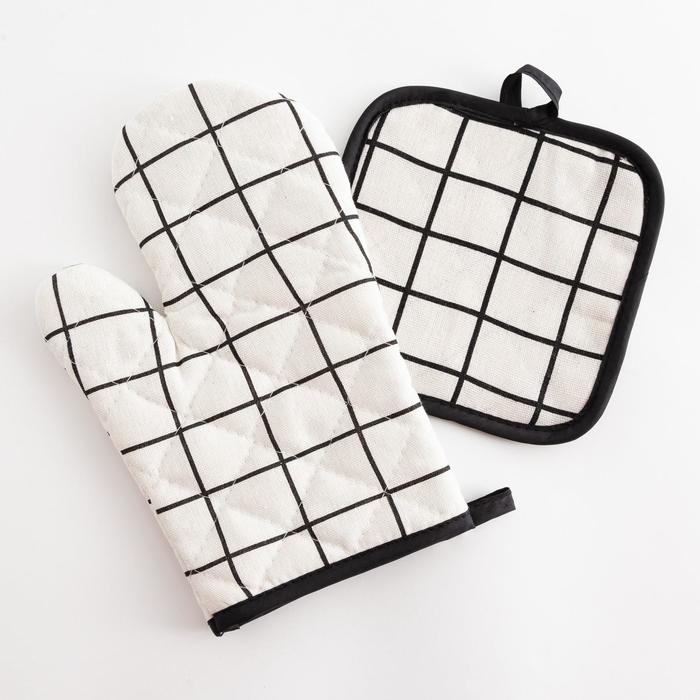 Кухонный набор Доляна «Клетка» цв.белый, прихватка 17*17 см, рукавица 26*16 см,100% п/э