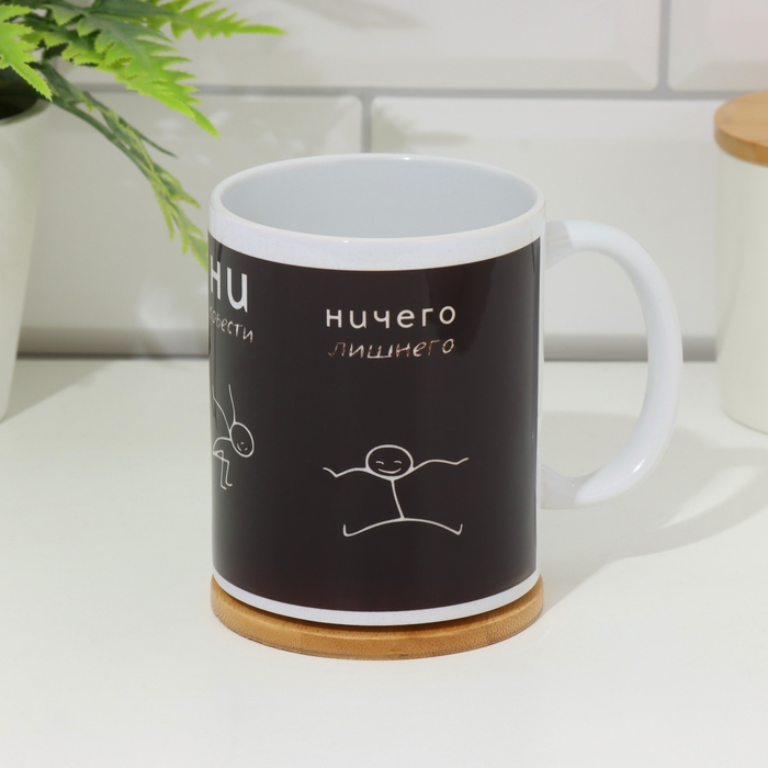 Кружка изготовлена из керамики. Рисунок нанесён методом сублимации, при котором краска проникает в верхний слой изделия, поэтому изображение получается стойким.