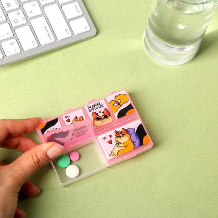 Таблетница, 7 × 7,8 × 3,5 см, 6 секций, складная, квадрат, цвет МИКС