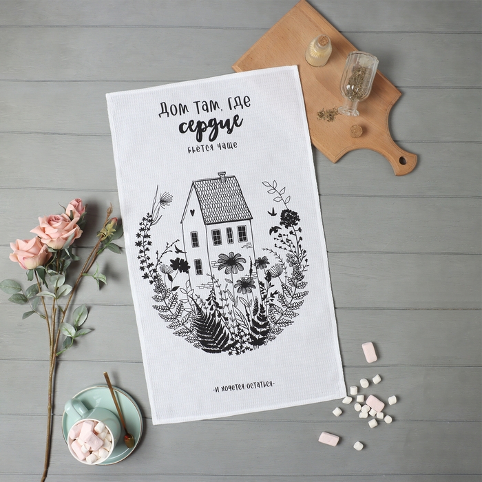 Полотенце кухонное Доляна «Дом там где сердце» 35х60 см, 100% хл, 160г/м2