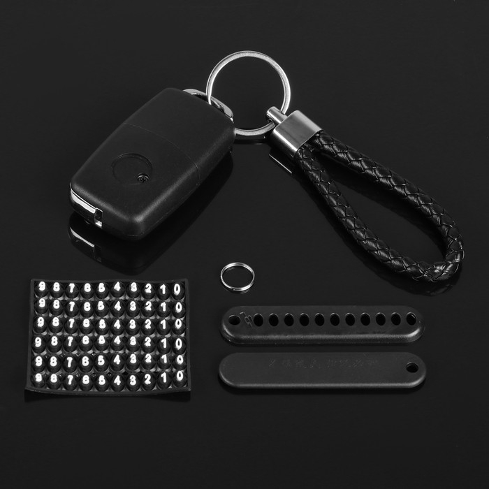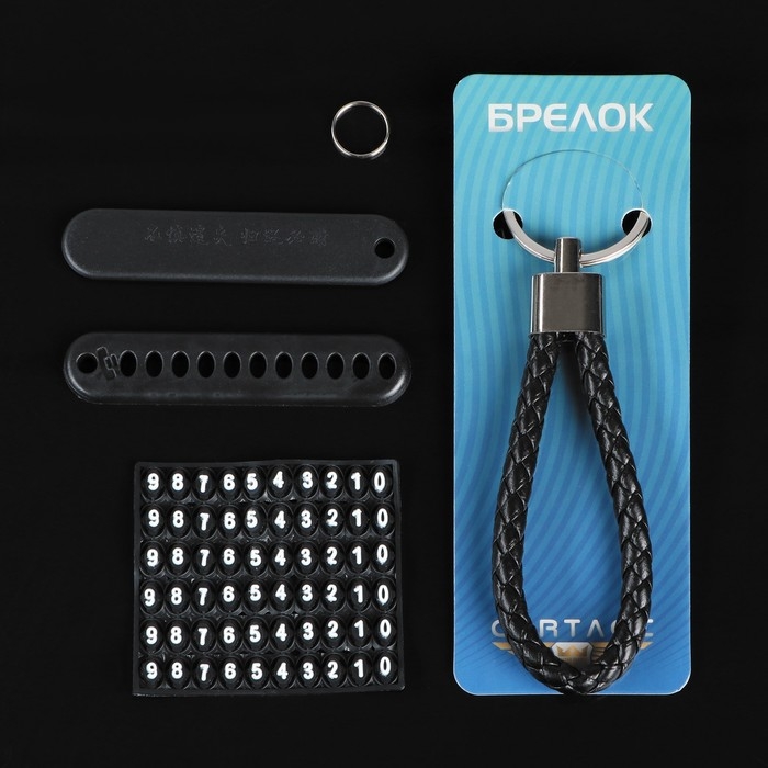 Брелок для ключей, петля с номером сотового, черный