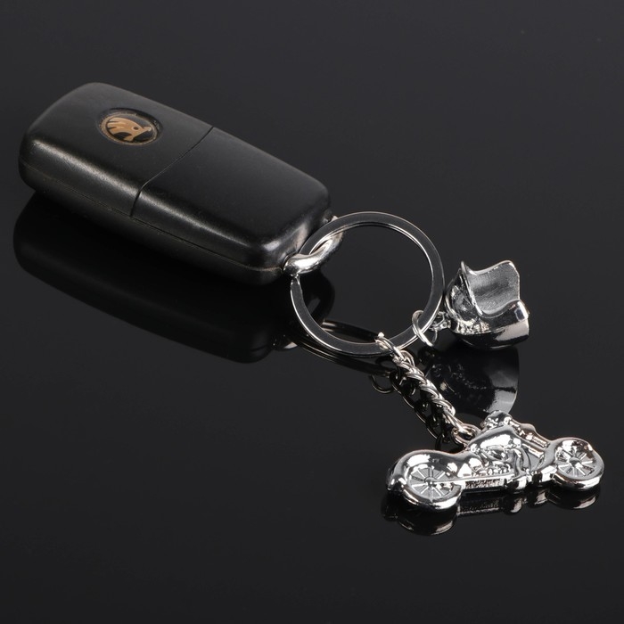 Брелок для ключей Cartage, "Байк с каской", хром