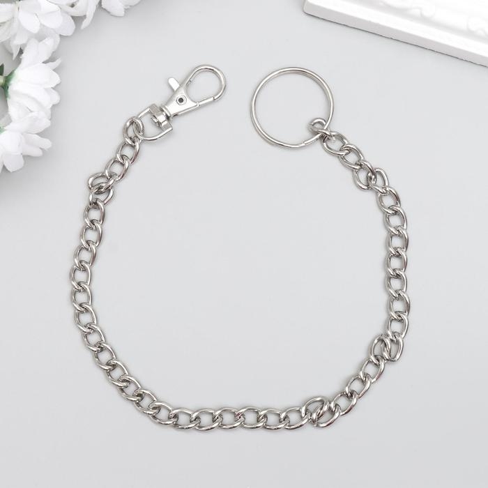 Цепочка д/ключей с карабином на кольце, серебристая 30 см