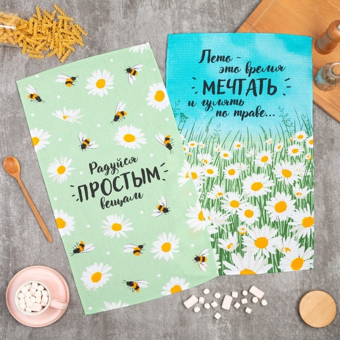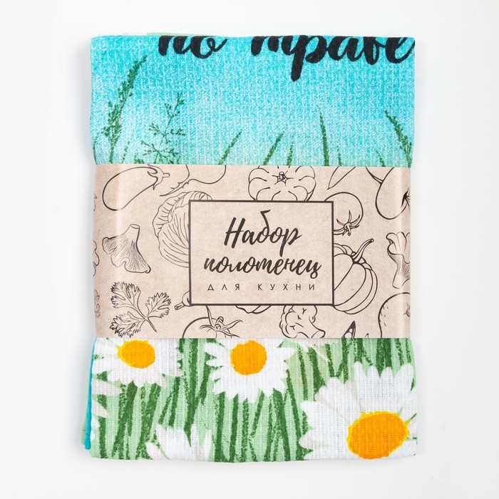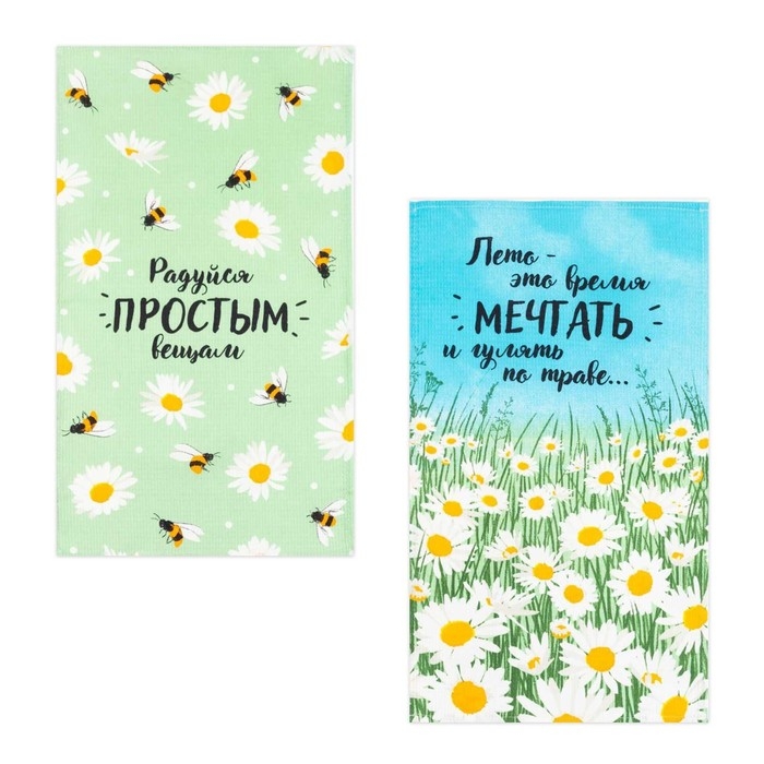 Набор полотенец кухонный "Доляна" Ромашки 35х60см-2шт, 100% хлопок